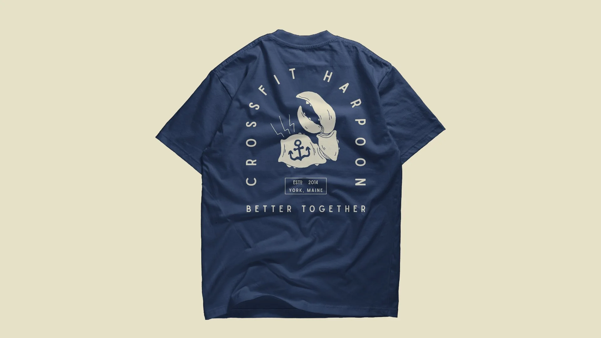 A collection of graphic tees and apparel designed for a coastal Maine CrossFit gym. The range explores three distinct visual directions—modern tattoo-inspired artwork, illustrative takes on sea legends, and pieces rooted in Japanese ocean folklore. Unified by a shared connection to the sea, each design reflects the strength, story, and spirit behind the Harpoon name.